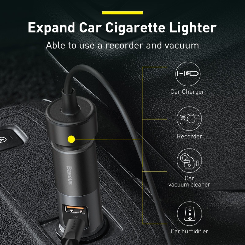 - Tên tiếng Anh: Baseus Share Together Fast Charge Car Charger with Cigarette Lighter Expansion Port