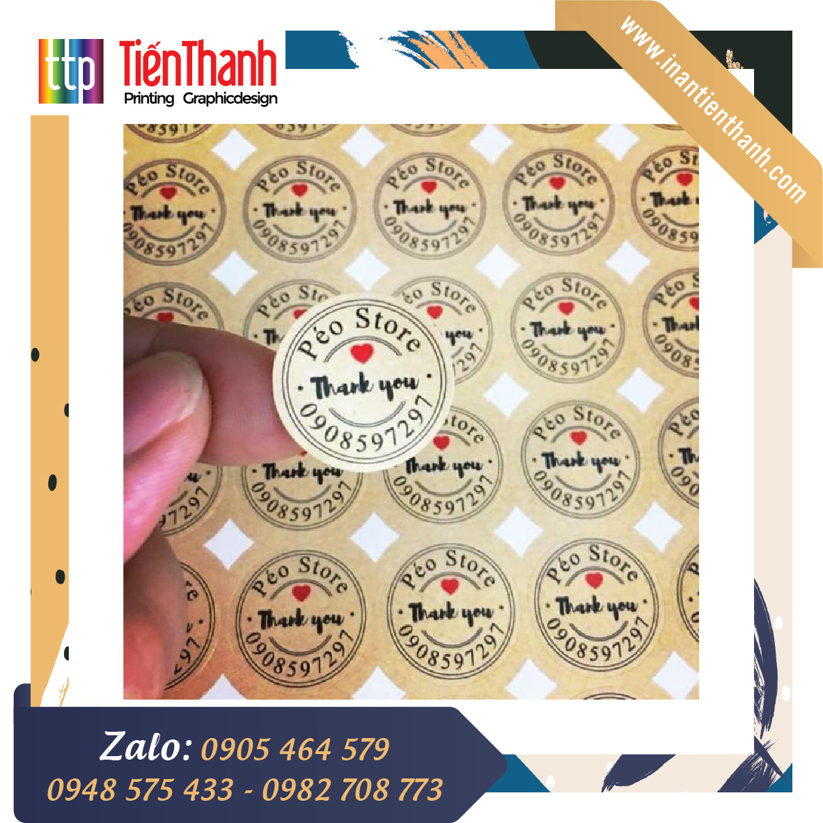 ************** CÔNG TY IN ẤN TIẾN THANH-MIỄN PHÍ HOÀN TOÀN PHÍ THIẾT KẾ ************* * Chất liệu : Decal giấy Kraft, cắt bế thành phẩm quý khách chỉ cần bóc và dán Tối thiểu in
