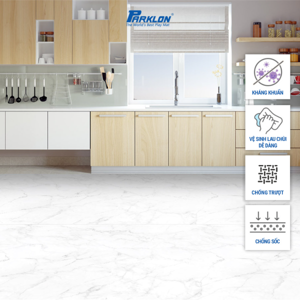 ✨Thảm Em Bé Cao Cấp Parklon PVC Vân Đá Hoa Cương Trắng Chính Hãng Hàn Quốc (700x110x1.7)cm Chống Bụi Kháng Khuẩn Khử Mùi Chống Ồn Chống Trượt Chống Sốc (PVC Roll Mat-White Marble)