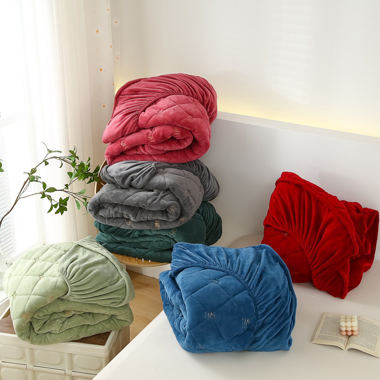 *Sét gồm 4 món - 1 chăn đã Chần bông micro siêu mềm mịn kích thước 2m2x2m - 1 ga chun may theo size yêu cầu của khách hàng ( có cả ga phủ) -
