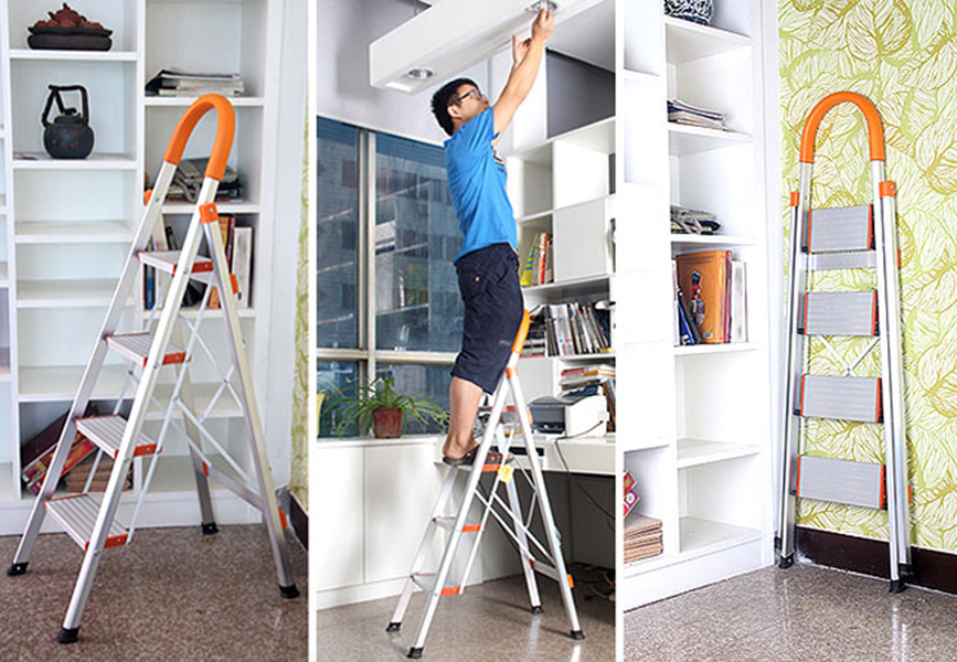 Thang Inox tay vịn thích hợp sử dụng cho phụ nữ, dùng làm vườn, lấy hồ sơ, thay bóng đèn, lau cửa kính…