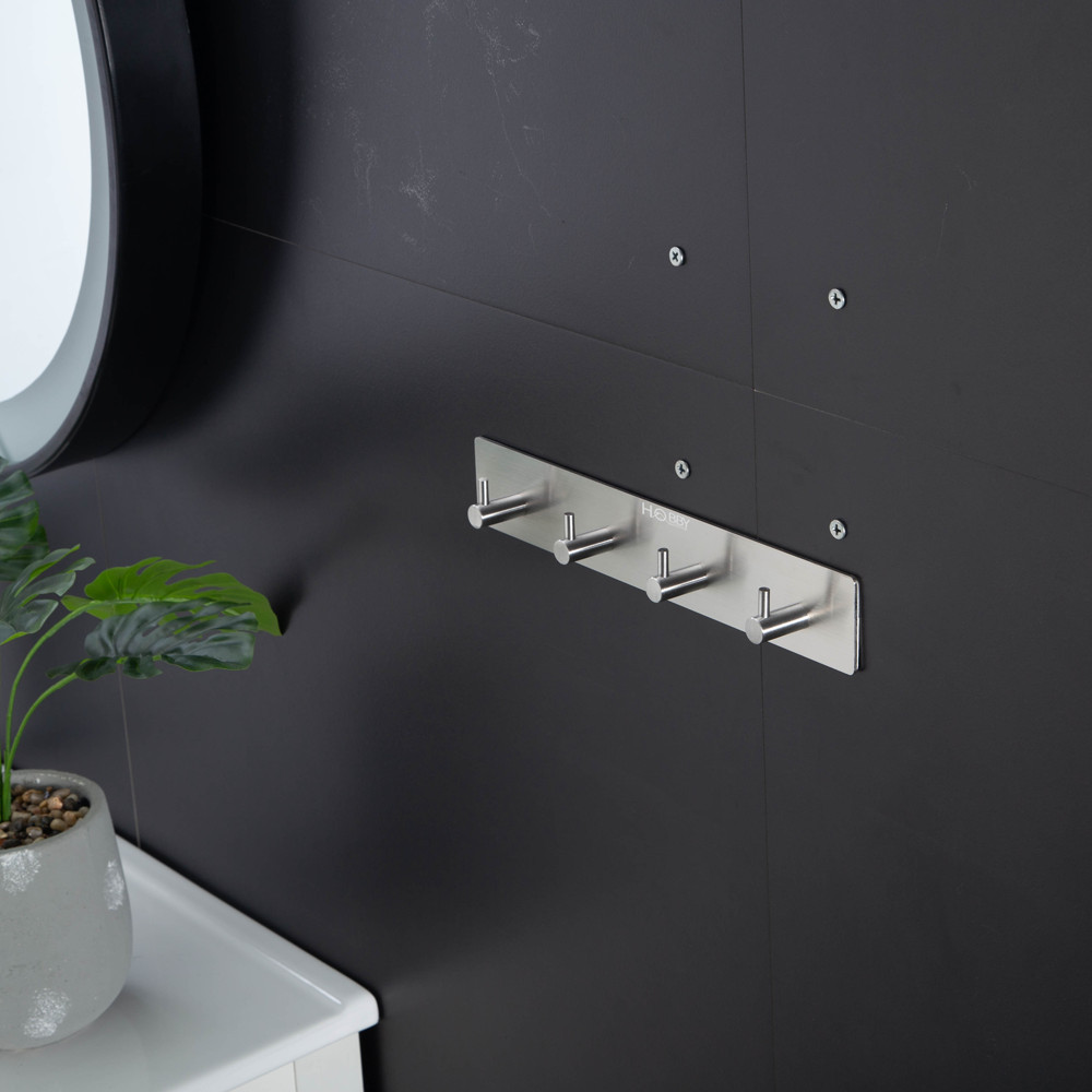 Thanh treo quần áo dán tường 4 chấu HOBBY home decor 4TV160 inox 304 Móc treo quần áo Inox 304 dán tường gạch men siêu dính thiết kế tiện lợi, phù hợp để treo quần