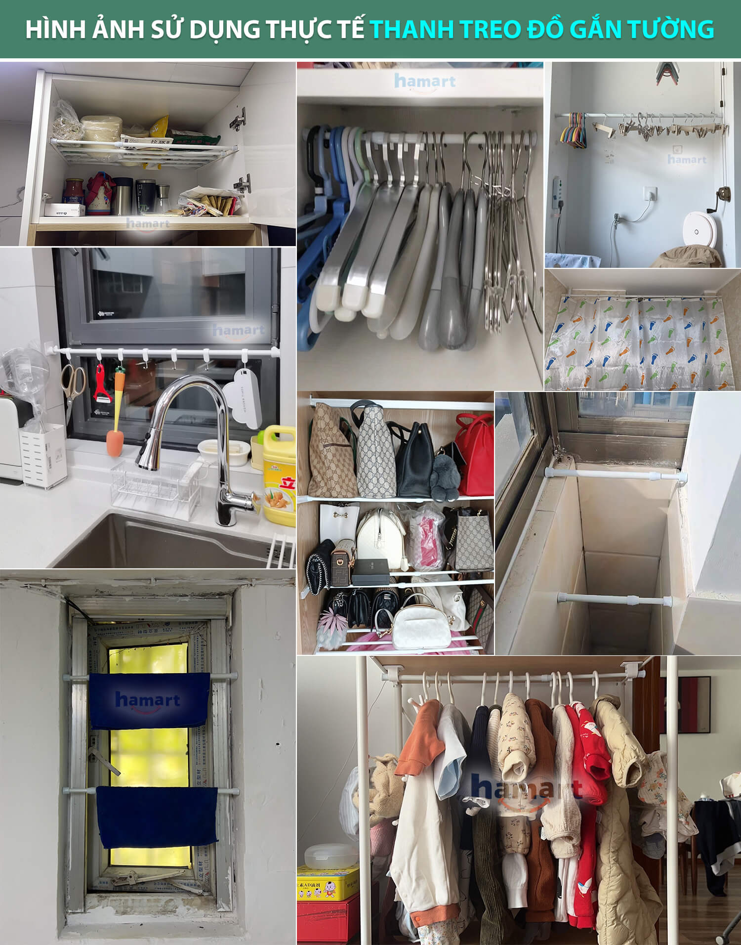 • Treo đồ đa năng, treo khăn, treo màn, treo quần áo, làm giá đỡ để đồ bếp ...