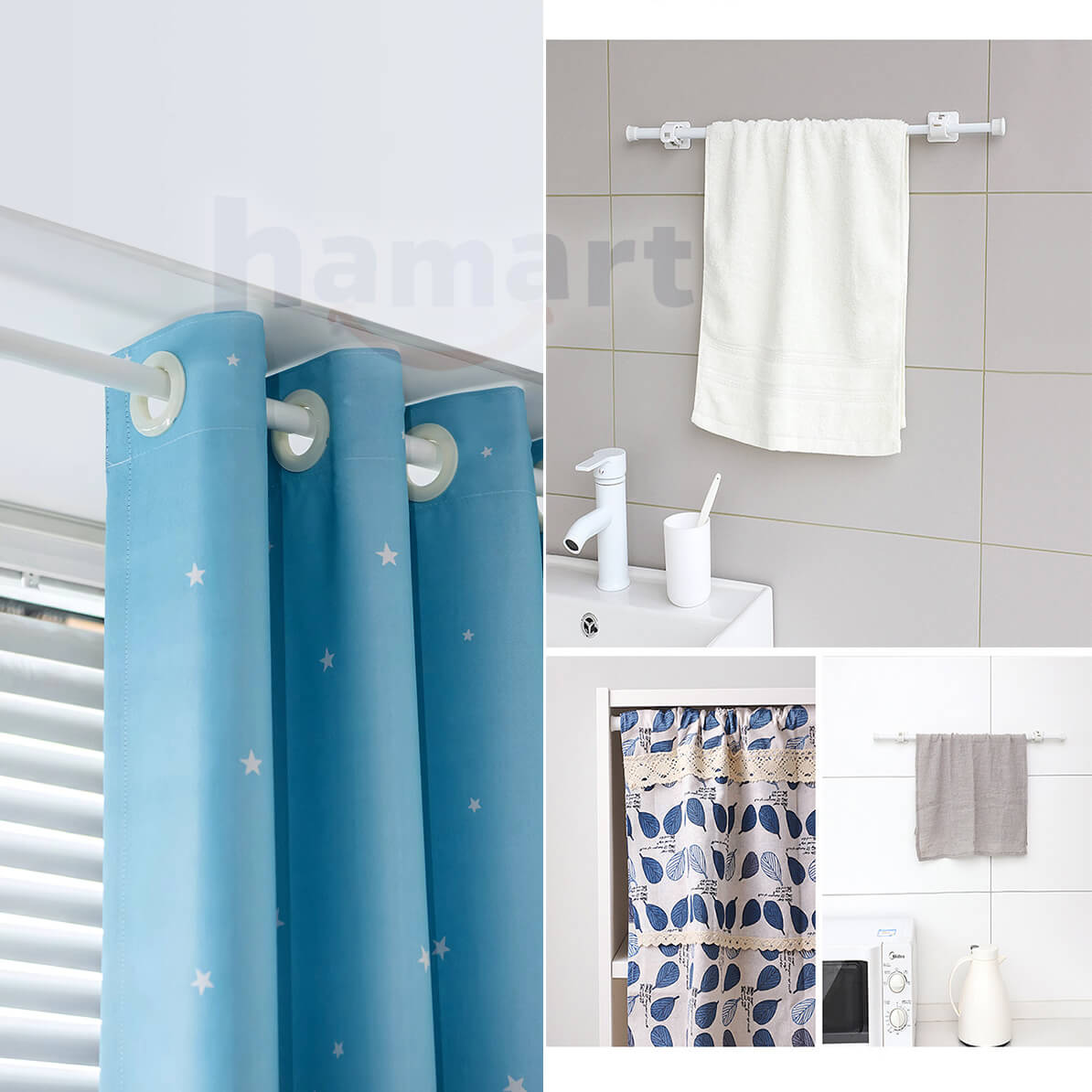 ️Sử dụng thanh treo rèm gắn tường thông minh, bạn cũng có thể dùng để treo đồ đa năng như treo khăn, quần áo, treo rèm cửa, các vật dụng trong nhà cũng như làm giá đỡ gác đồ vật. Thanh treo đồ đa năng có thể tuỳ chỉnh độ dài, rất tiện lợi cho việc treo màn cửa sổ, cửa phòng hay bất kì khoảng không gian nào bạn muốn che chắn - không cần khoan đục, bắt vít, không hư hại tường, di chuyển linh hoạt, 1 thanh treo đồ đa năng có khả năng chịu tải tối đa 2kg.