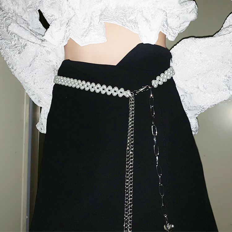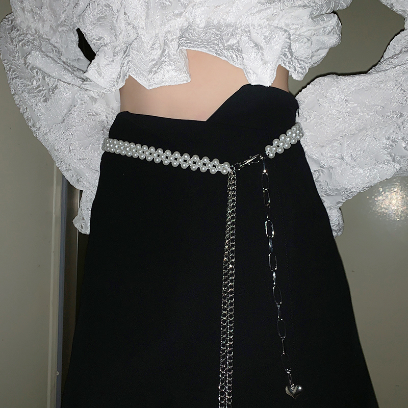 ✨Thắt lưng chuỗi ngọc trai dây đai belt váy xích thắt lưng trái tim 3D ấn tượng nam nữ cá tính unisex siêu tôn dáng