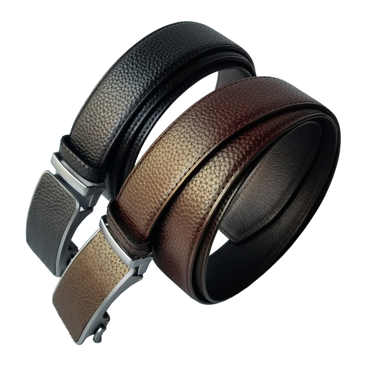 Thắt lưng nam da thật mặt khóa tự động bằng thép sáng bóng không gỉ