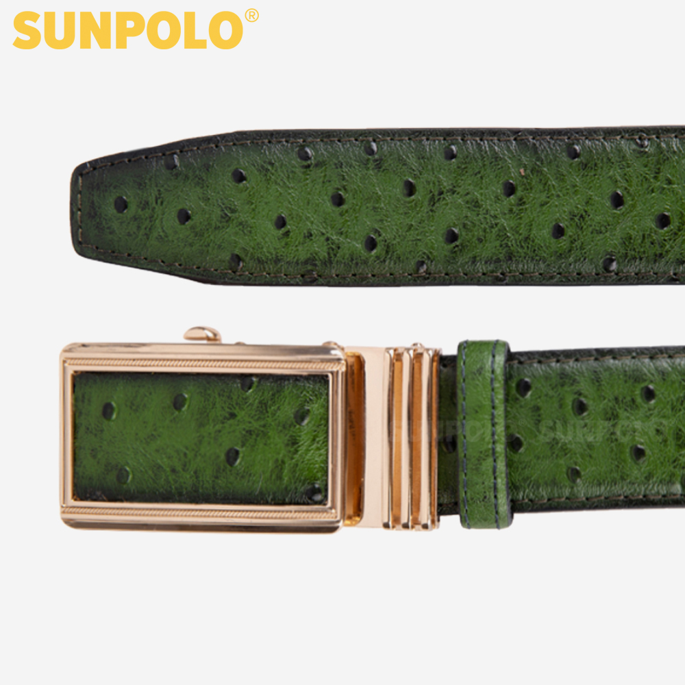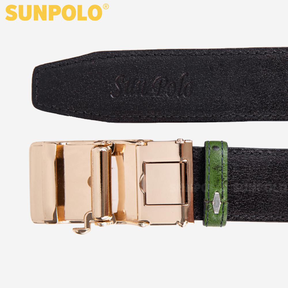 ✨Thắt Lưng Nam Da Bò Vân Đà Điểu SUNPOLO BSAL38 (Đen, Xanh Lục, Nâu, Nâu Bò)