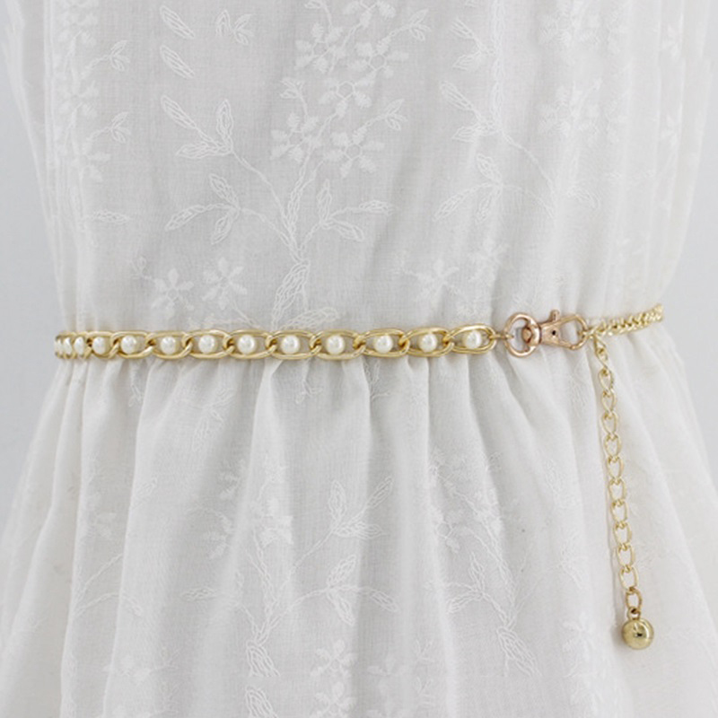 ✨Thắt Lưng Ngọc Trai Nịt Móc Xích Chuỗi Hạt Đeo Eo Body Ngọc Trai Dây Kim Loại Mạ Vàng Đầm Váy
