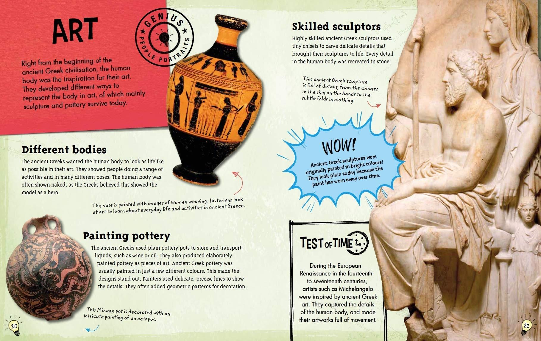 Which genius ideas and inventions began with the ancient Greeks? What did they develop that we use to this day? Find out how the ancient Greeks organised their society, trained their soldiers, used their ships for trade and transport and built their temples. Discover their brilliant developments in architecture, politics, art, medicine, theatre and sport that have influenced the way we live today.