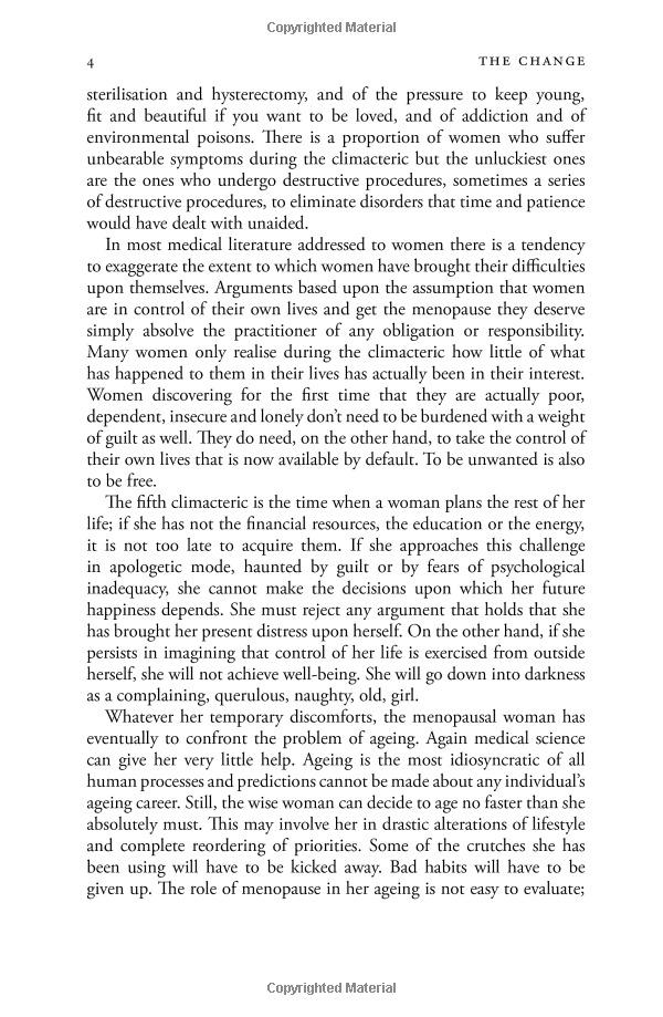 Now more than ever, amid the clamour of online chatrooms and promotions for a vast array of alternative therapies, the individual woman has to manage her passage through menopause for herself. In The Change, Germaine Greer provides a common-sense guide to a very interesting and important stage of women's lives.