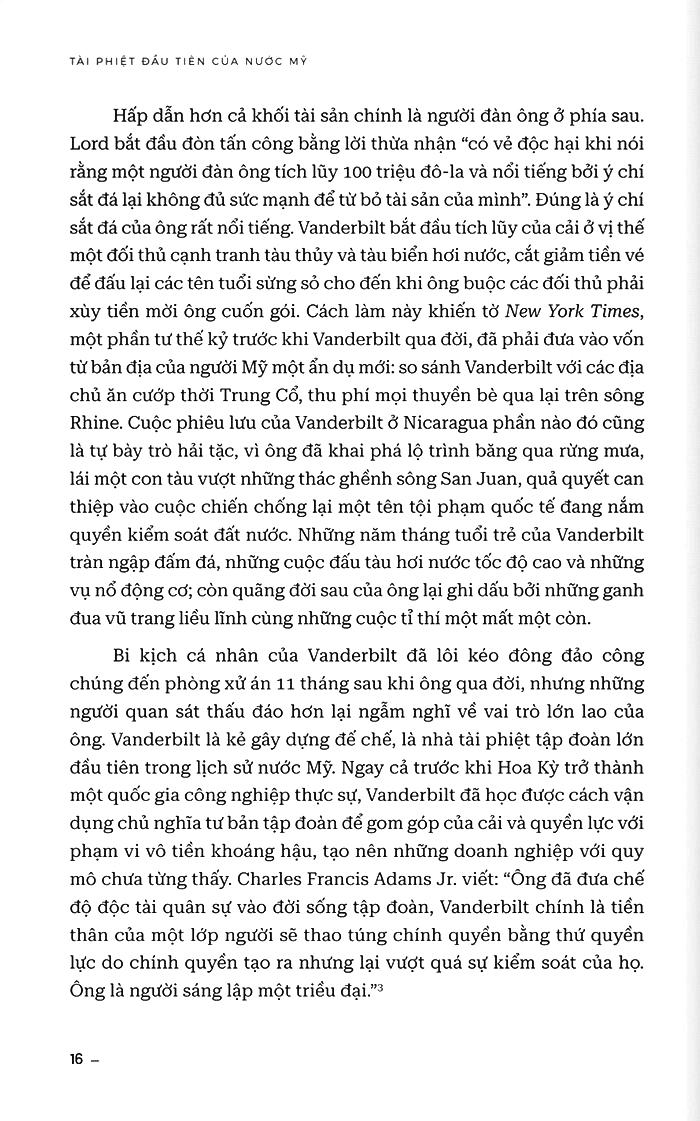 Trong số tất cả các nhà công nghiệp và nhân vật tài chính quan trọng của lịch sử Hoa Kỳ, Vanderbilt có thể coi là người đóng vai trò quan trọng nhất. Tuy nhiên, không giống như Jay Gould, JP Morgan, John D. Rockefeller và Andrew Carnegie, Ngài Phó đề đốc chưa bao giờ có được cho m.ình một cuốn tiểu sử đầy đủ và chính xác. Cuốn sách của tác giả T.J. Stiles là thành quả của sáu năm nghiên cứu chuyên sâu (trong các kho lưu trữ chưa được khai thác trước đây), được tổng hợp thành một câu chuyện có nhịp độ nhanh về một con người và đất nước cùng nhau vươn lên.