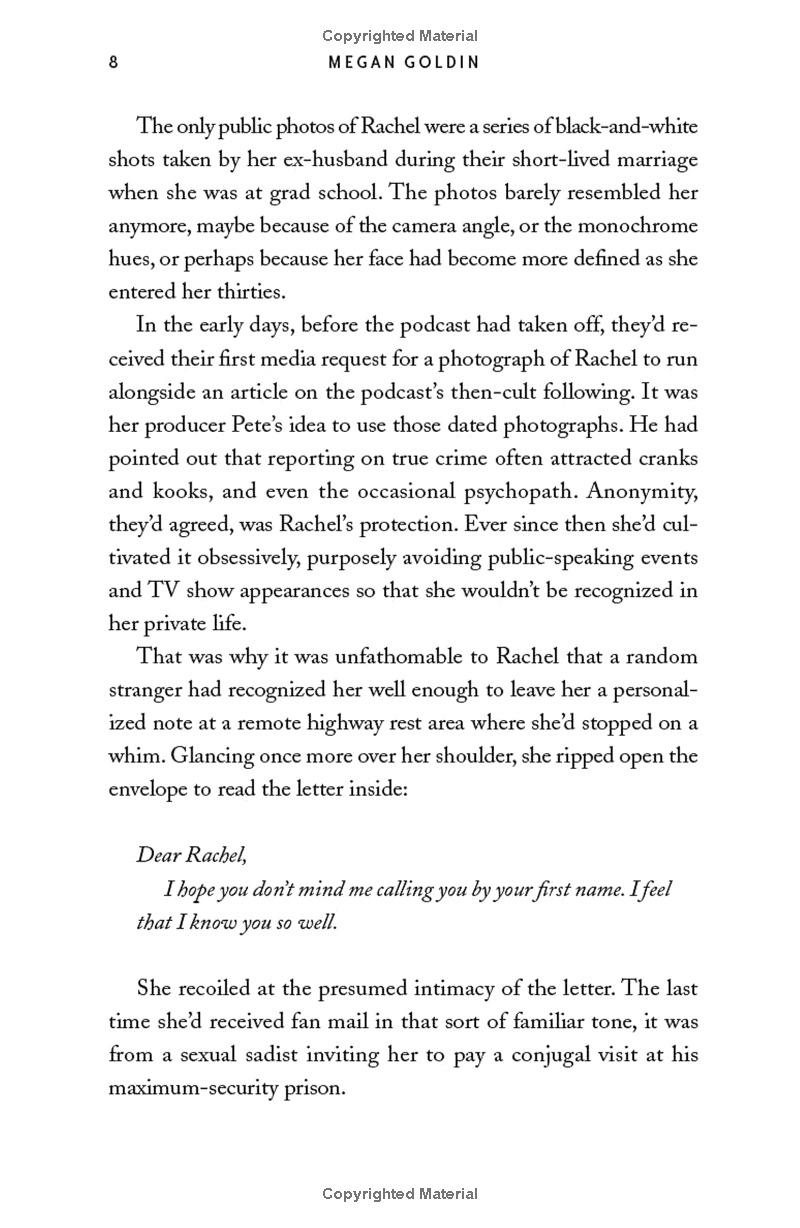 The new season of Rachel's podcast has brought her to a small town being torn apart by a devastating rape trial. A local golden boy, a swimmer destined for Olympic greatness, has been accused of raping the beloved granddaughter of the police chief. Under pressure to make Season 3 a success, Rachel throws herself into her investigation - but the mysterious letters keep coming. Someone is following her, and she won't stop until Rachel finds out what happened to her sister twenty-five years ago. Officially, Jenny Stills tragically drowned, but the letters insist she was murdered - and when Rachel starts asking questions, nobody in town wants to answer. The past and present start to collide as Rachel uncovers startling connections between the two cases - and a revelation that will change the course of the trial and the lives of everyone involved.