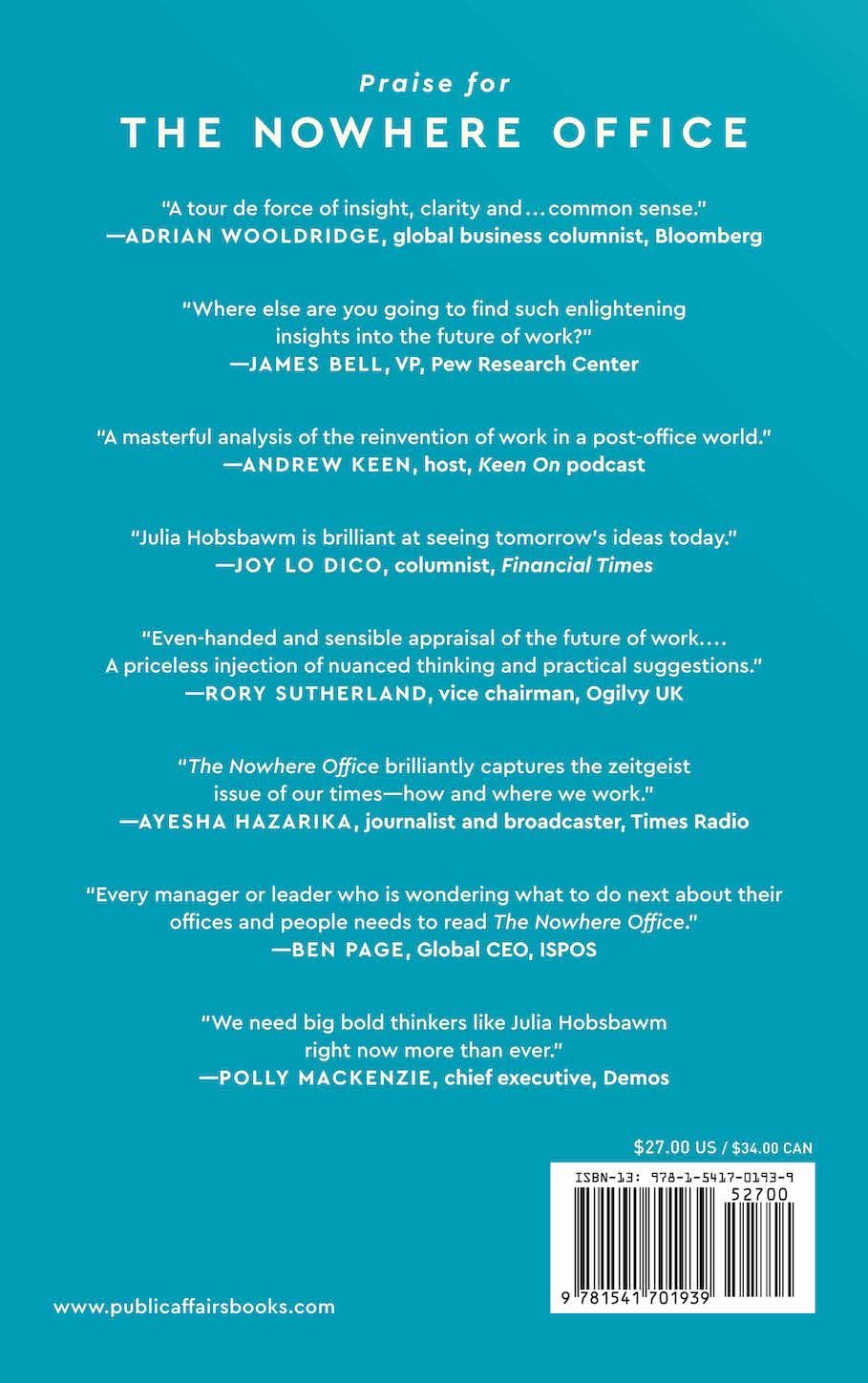 Hobsbawm draws on her extensive networks in business, academia, and entrepreneurship across generations to offer new ideas about how to handle hybrid working, as well as provides deep insight into how the way we work is being transformed by larger issues such as community, hierarchy, bias, identity, and security. The Nowhere Office describes a unique moment in the history of work which, if understood and handled correctly, can provide a springboard for the biggest transformational change in the workplace for a century: something better, more meaningful, and more workable for everyone.