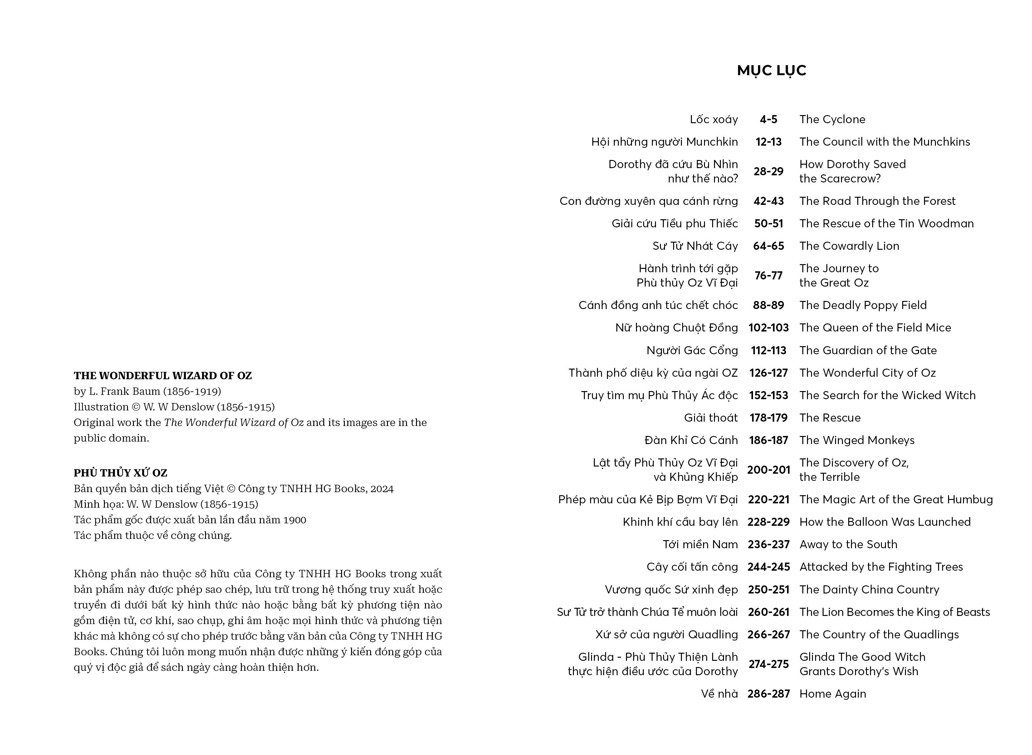 • Phần tiếng Anh là tác phẩm gốc của L. Frank Baum được xuất bản lần đầu năm 1900.