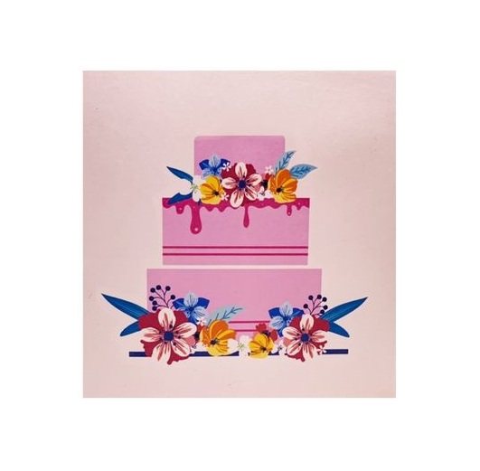Mang đến sự bất ngờ và ấn tượng với thiệp 3D Pop Up bánh kem sinh nhật 3 tầng. Khi mở ra, chiếc bánh kem màu hồng trang trí hoa văn rực rỡ bật nổi