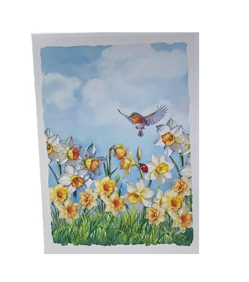 Gửi lời chúc may mắn và hạnh phúc bằng thiệp 3D Pop Up hoa thủy tiên vàng. Khi mở ra, bó hoa thủy tiên bung nở rực rỡ với sắc vàng – cam – trắng đầy tươi sáng, kèm hình ảnh chú chim nhỏ và bọ rùa đáng yêu tạo nên bức tranh thiên nhiên sống động. Hoa thủy tiên là biểu tượng của sự khởi đầu mới, niềm tin và hy vọng, rất phù hợp để gửi tặng trong dịp sinh nhật, chúc mừng, khai trương hoặc như một lời động viên tinh thần. Đặc điểm nổi bật (Bullet points)
