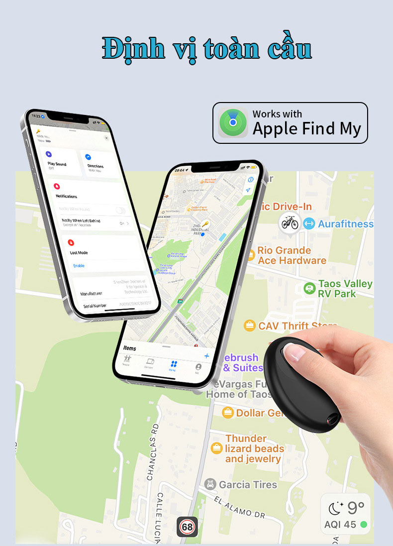 Khả năng tương thích: Thích hợp cho hệ thống IOS. (iOS đi kèm với một phần mềm'Find My ')