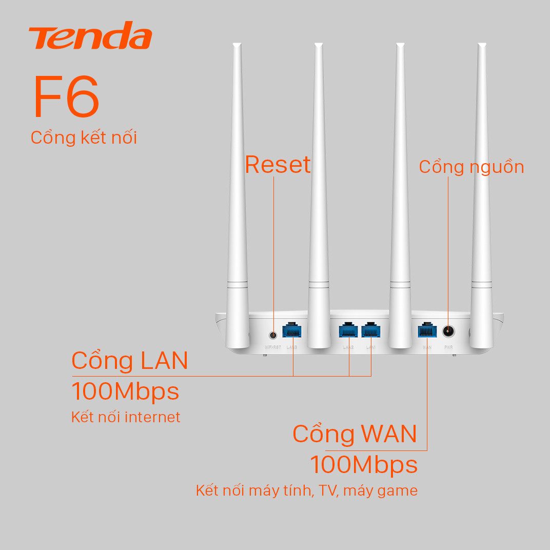 Router - Thiết Bị Phát Sóng Wifi 4 Anten TENDA F6 TỐC ĐỘ N300Mbps - Hoàng Thịnh Television