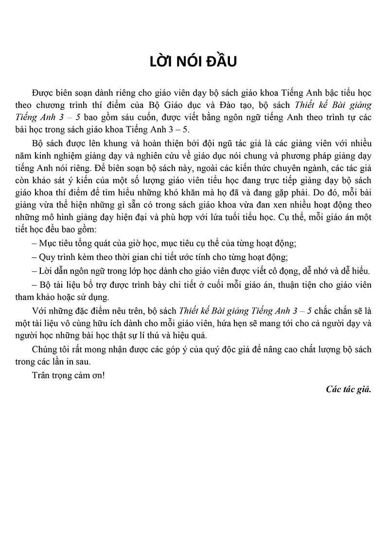 Bộ sách được lên khung và hoàn thiện bởi đội ngũ tác giả là các giảng viên với nhiều năm kinh nghiệm giảng dạy và nghiên cứu về giáo dục nói chung và phương pháp giảng dạy Tiếng Anh nói riêng.