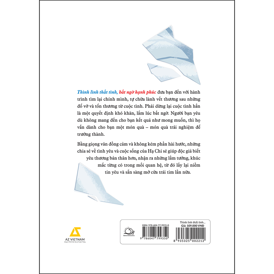 Thình lình thất tình, bất ngờ hạnh phúc của Hạ Chi (người viết, có hơn mười năm kinh nghiệm trong lĩnh vực báo chí – quảng cáo) sẽ đưa bạn đến với hành trình tìm lại chính mình, tự chữa lành vết thương sau những đổ vỡ. Người bạn yêu dù không mang đến kết quả như mong muốn, thì họ vẫn dành cho bạn một món quà – món quà trải nghiệm để trưởng thành.