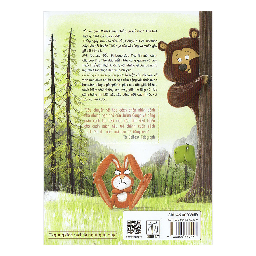Tiếng ngáy khò khò của Gấu, tiếng Gõ Kiến mổ thân cay liên hồi khiến Thỏ bực tức vô cùng và muốn gây gổ vưới tất cả …. Một lúc sau, Gấu tốt bụng đưa Thỏ lên một cành cây cao tít.Thỏ đưa mắt nhìn xungquanh và cảm thấy thế giới thật khác lạ với những gì cậu bé nghĩ, mọi thứ sao thật đẹp và bình yên…. Cô nàng Gõ kiến phiền phức là một câu chuyện về tình bạn chứa nhiều bài học cảm động với phần minh họa sinh động, ngộ nghĩnh, giúp các độc giả nhí học cách kiềm chế những cơn nóng giận, lo lắng và tiếp cận những tri kiến sâu sắc bằng một cách thức vui tươi và hài hước.