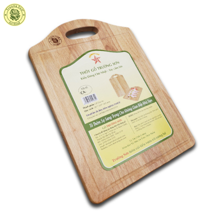 Thớt Gỗ Cao Su Chữ Nhật Quai Cầm được làm từ khối gỗ cao su, đẹp và chắc chắn, gia công cẩn thận, sắc xảo.
