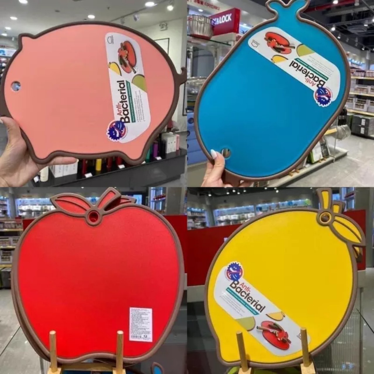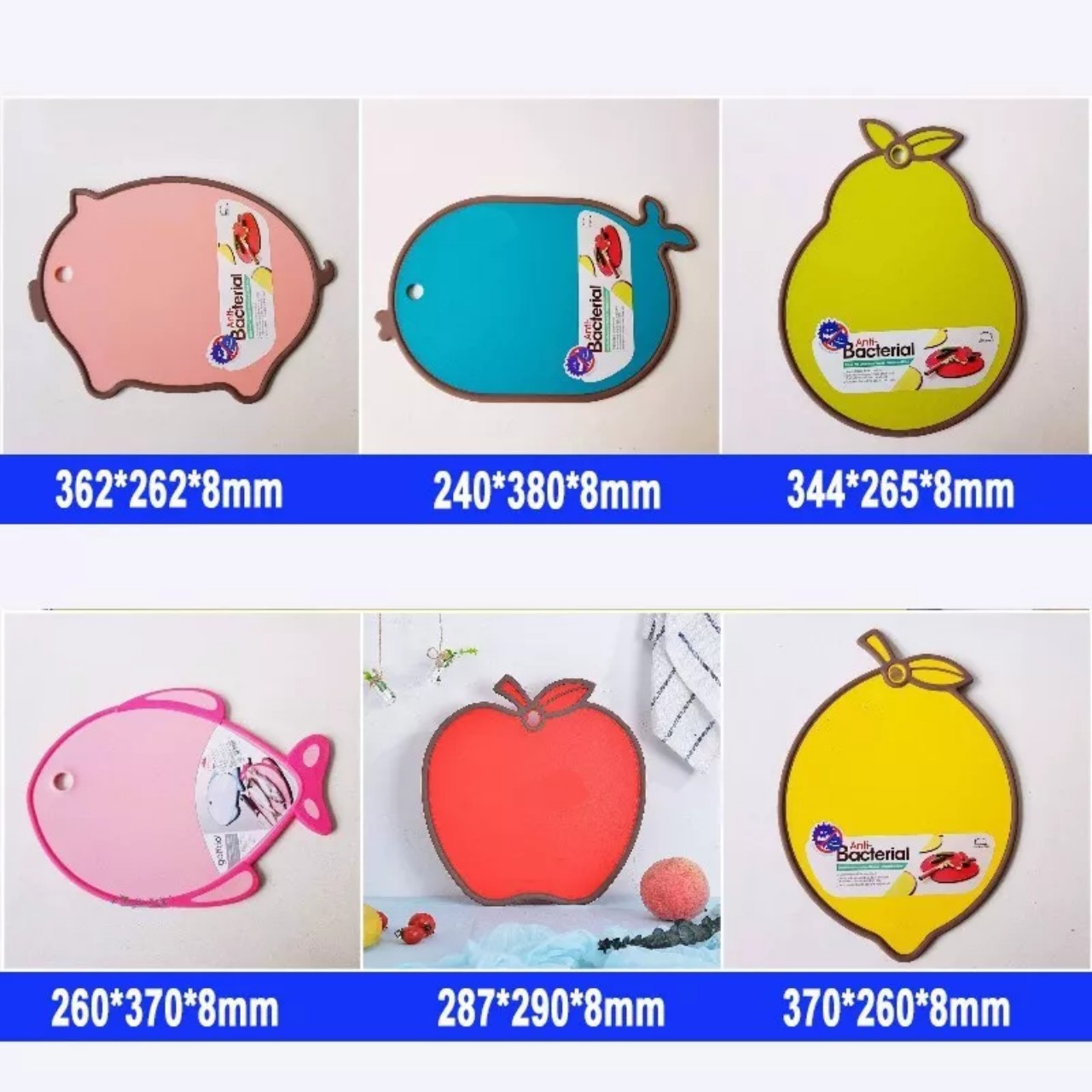 - Thớt nhựa chống trượt được thiết kế nhỏ gọn với nhiều hình thù ngộ nghĩnh dễ thương cùng kết hợp với màu sắc tươi sáng góp phần tô điểm cho không gian bếp nhà bạn thêm sinh động.