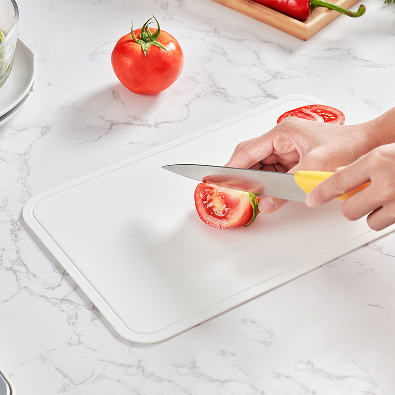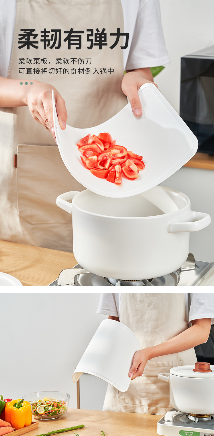 - Thớt có thể uốn dẻo nên rất tiện lợi khi cho thức thực phẩm vào bát, nồi... khi thái xong.