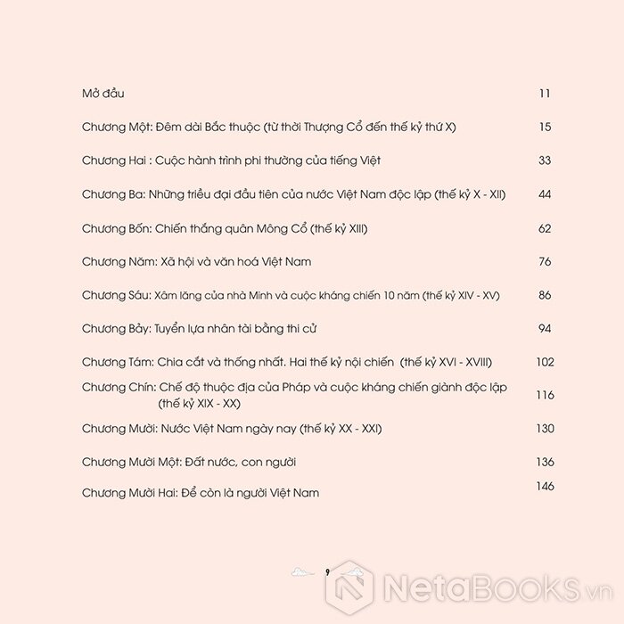 Cuốn sách là một cách kể lại lịch sử người Việt, đất Việt với góc nhìn dễ tiếp cận nhất mà vẫn đủ đầy: từ đêm dài Bắc thuộc (thời Thượng cổ đến thế kỷ X) – đến những triều đại đầu tiên của nước Việt độc lập (thế kỷ X-XII) cùng với cuộc hành trình phi thường của tiếng Việt; bên cạnh đó là các cuộc chống quân Nguyên – Mông đến cuộc xâm lăng của nhà Minh, giai đoạn Pháp thuộc cho đến ngày nay cùng những biến động lớn về văn hóa xã hội để cuối cùng, người Việt đã khẳng định mình phi thường ra sao.