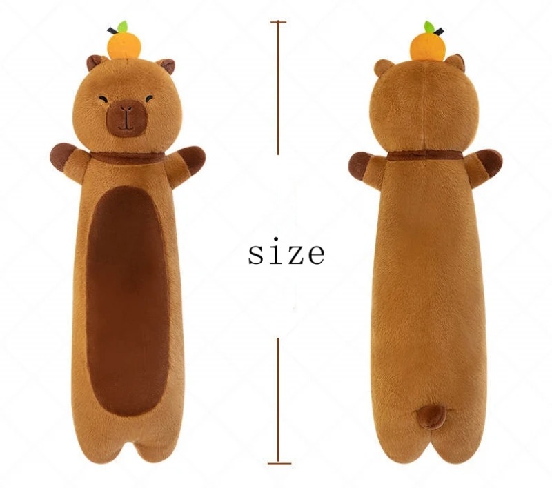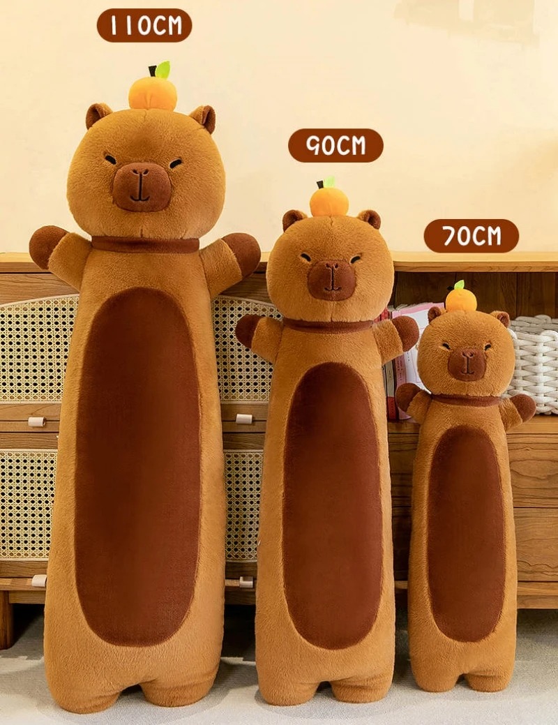 ✨Thú nhồi bông capybara đứng đội quả cam đáng yêu - Size từ 70cm đến 1m1 - Quà tặng gấu bông chuột lang dáng dài êm mịn.