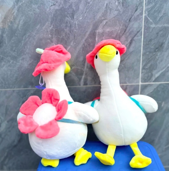 ✨Thú nhồi bông ngỗng trắng đội mũ đáng yêu - Size 25cm - Quà tặng gấu bông vịt trắng êm mịn cho bé