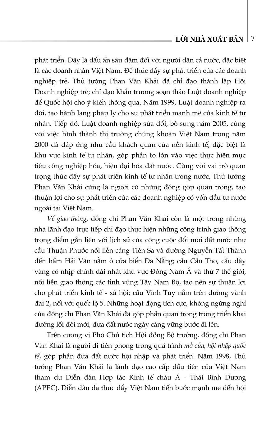 Cuốn sách gồm 3 phần, tuyển chọn những bài phát biểu, bài viết, báo cáo, văn bản chỉ đạo, góp ý, bút tích phê duyệt, của đồng chí Phan Văn Khải trên cương vị là Phó Chủ tịch Hội đồng Bộ trưởng, Phó Thủ tướng Chính phủ, Thủ tướng Chính phủ trong khoảng thời gian từ năm 1992 đến năm 2006. Các bài viết tập trung vào các lĩnh vực kinh tế, văn hóa, xã hội, ngoại giao, được tập hợp theo chủ đề và trình tự thời gian, diễn biến của sự việc, sự kiện. Các tài liệu được công bố toàn văn hoặc lược trích, chú giải rõ nguồn.