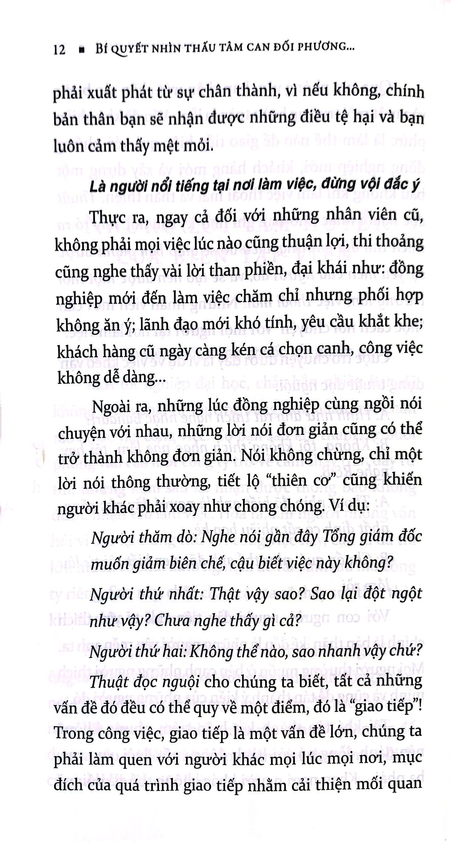 Với mục đích học để ứng dụng, dựa trên những kết quả nghiên cứu ứng dụng tâm lý học trong một thời gian dài, tác giả trình bày và giải thích về thuật đọc nguội một cách hệ thống. Sau khi tổng hợp tối đa các kiến thức chuyên ngành như: tâm lý học, ngôn ngữ học, marketing… tác giả đã chỉnh lý, bổ sung và kết cấu thành hệ thống về kỹ năng này từ những ứng dụng của nó trong cuộc sống hàng ngày như: làm sao để nhanh chóng có được sự tin tưởng của đối phương, hay làm thế nào để khởi đầu giao tiếp một cách thuận lợi, tìm hiểu và nắm bắt tâm lý của người hướng nội hay hướng ngoại… Trong chương cuối cùng của cuốn sách, tác giả tuyển chọn ra chin loại hình ngôn ngữ đọc nguội quan trọng nhất trong giao tiếp xã hội. Khi đã nắm vững kỹ năng, vận dụng thành thục thuật đọc nguội để hiểu thấu và điều khiển suy nghĩ của đối phương, bạn sẽ chiếm được cảm tình của rất nhiều người, các mối quan hệ xã hội của bạn cũng từ đó sẽ ngày càng được mở rộng.