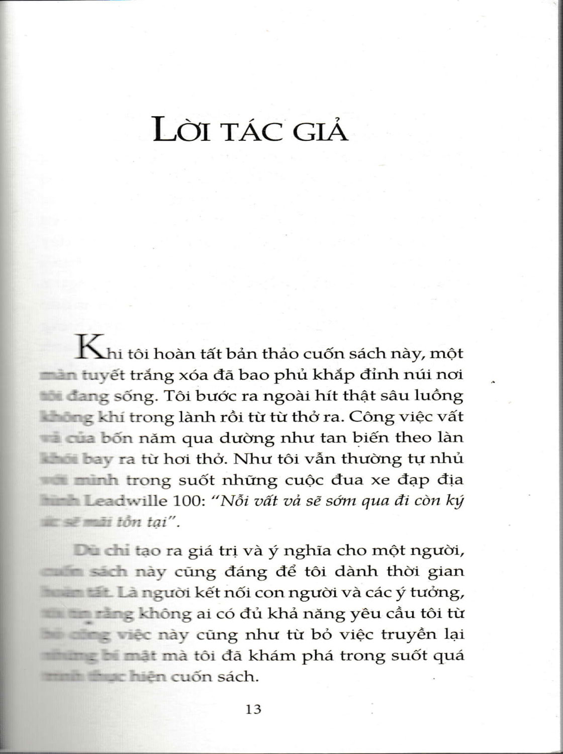 Giống như sự vận hành của bánh xe, các chương này phản ánh phạm vi ảnh hưởng của bạn được mở rộng từ trục bên trong, sau đó lan rộng ra để chi phối sự chuyển động của toàn bộ bánh xe. Chương cuối cùng – “Integrity” – có nghĩa là toàn vẹn hoặc hoàn chỉnh – sẽ hoàn thiện toàn bộ bánh xe phát triển này. Bạn có thể dễ dàng đọc hết cuốn sách này chỉ trong một lần. Bạn cũng có thể chọn riêng bất cứ chương nào bạn cho là phù hợp với mình và chậm rãi khám phá chiều sâu của nó một cách độc lập. Dù bằng cách nào thì cuốn sách vẫn sẽ tiết lộ những điểm mấu chốt giúp bạn khám phá ra tiềm năng thật sự ẩn bên trong con người bạn.
