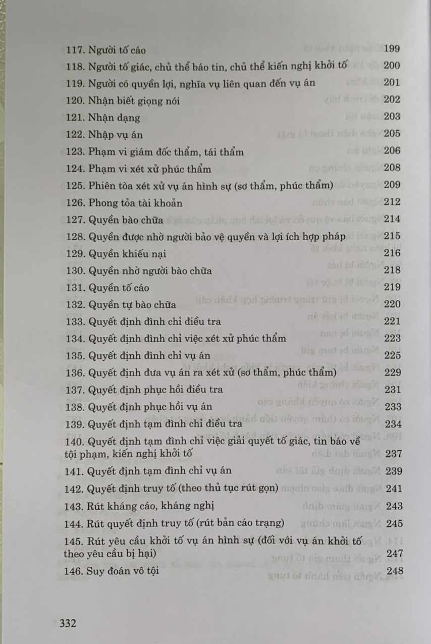 Thuật ngữ pháp lý tố tụng hình sự Tác giả: PGS. TS. GVCC. Phan Trung Hiền (Chủ biên) Số trang: 336 Khổ sách: 16*24cm Phát hành: 11.2021 Bộ luật Tố tụng hình sự năm 2015