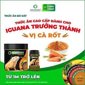 ✨Thức ăn bò sát Iguana Trưởng Thành GREENABC vị cà rốt dùng cho Iguana từ 1m trở lên giúp gai bung, gù cao, dáng đẹp, lên màu tươi – Hộp 230g