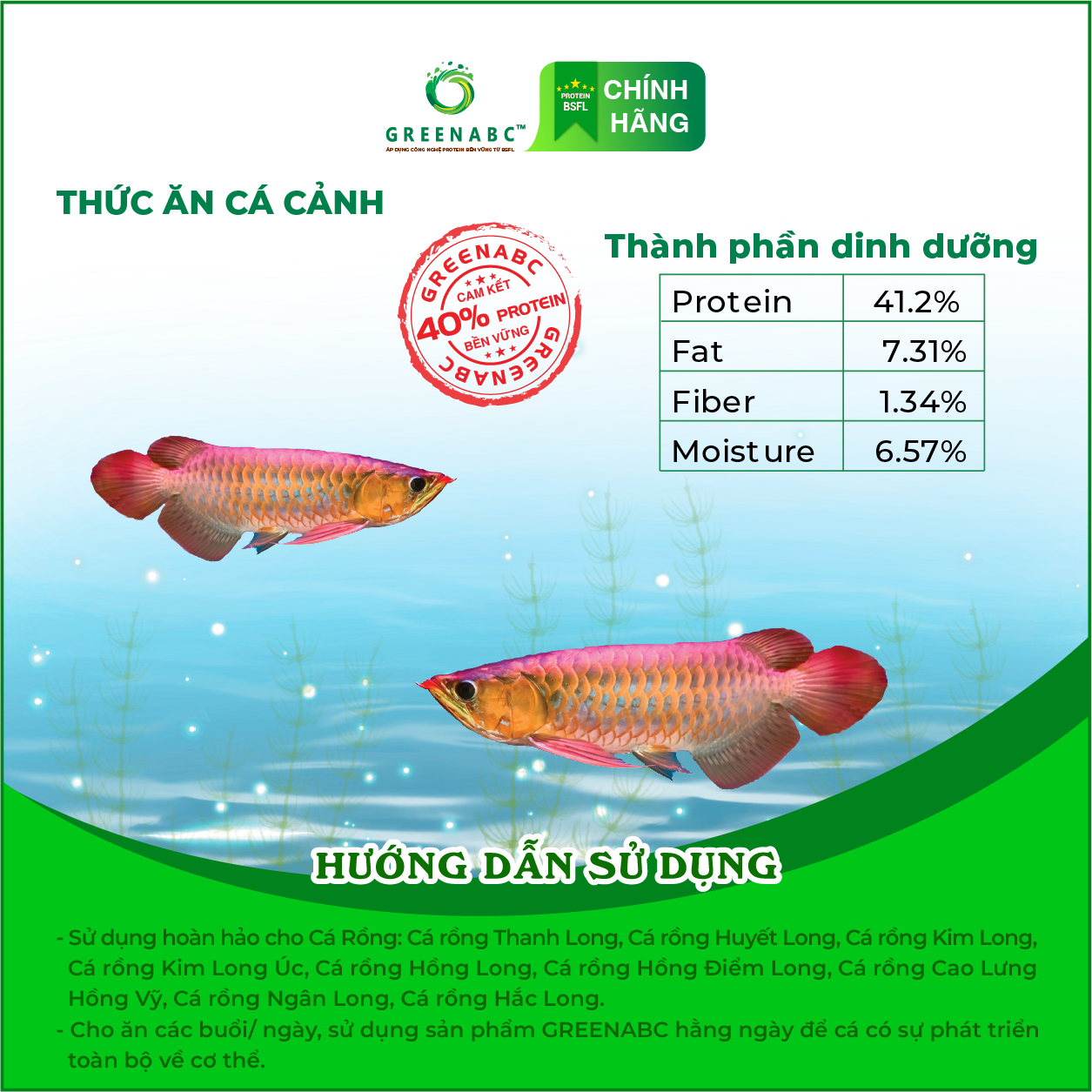 GREENABC - THỨC ĂN CÁ RỒNG - HÀM LƯỢNG PROTEIN > 40%