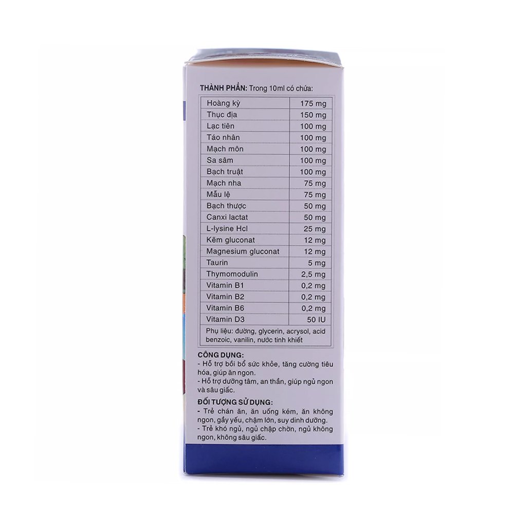 Hộp 6 vỉ x 10 viên nang mềm - Bổ sung lysin, kẽm - Hổ trợ ăn ngon, ngủ ngon - Giúp tăng cường sức đề kháng Cách dùng: Uống 2 viên/lần, ngày 1-2 lần