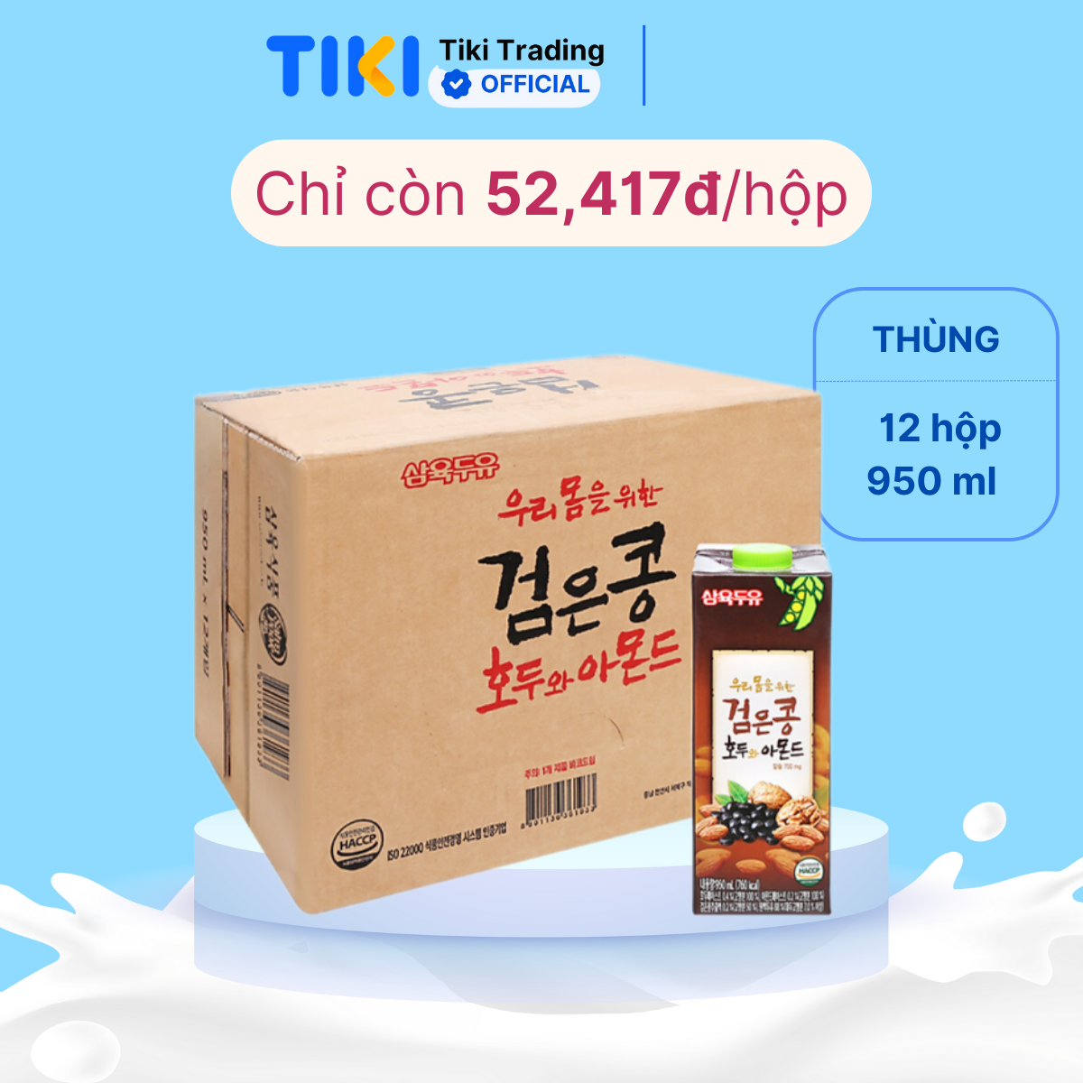 ✨Thùng 12 Hộp Sữa Đậu Đen, Óc Chó, Hạnh Nhân Sahmyook Foods (950ml/Hộp)