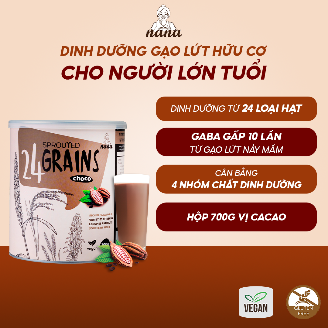 Sữa Hạt Gạo Lứt Hữu Cơ 24Grains 700g Vị Socola Nhập Khẩu Malaysia Cho Trẻ Từ 3 Tuổi & Người Lớn Bổ Sung Dinh Dưỡng Vegan - 24grains