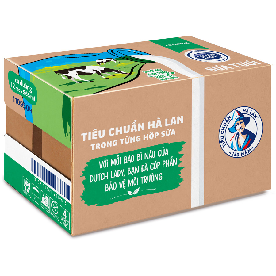 ✨Thùng 12 Hộp Sữa Tươi Tiệt Trùng Dutch Lady Cô Gái Hà Lan Có Đường (12 X 965ML)