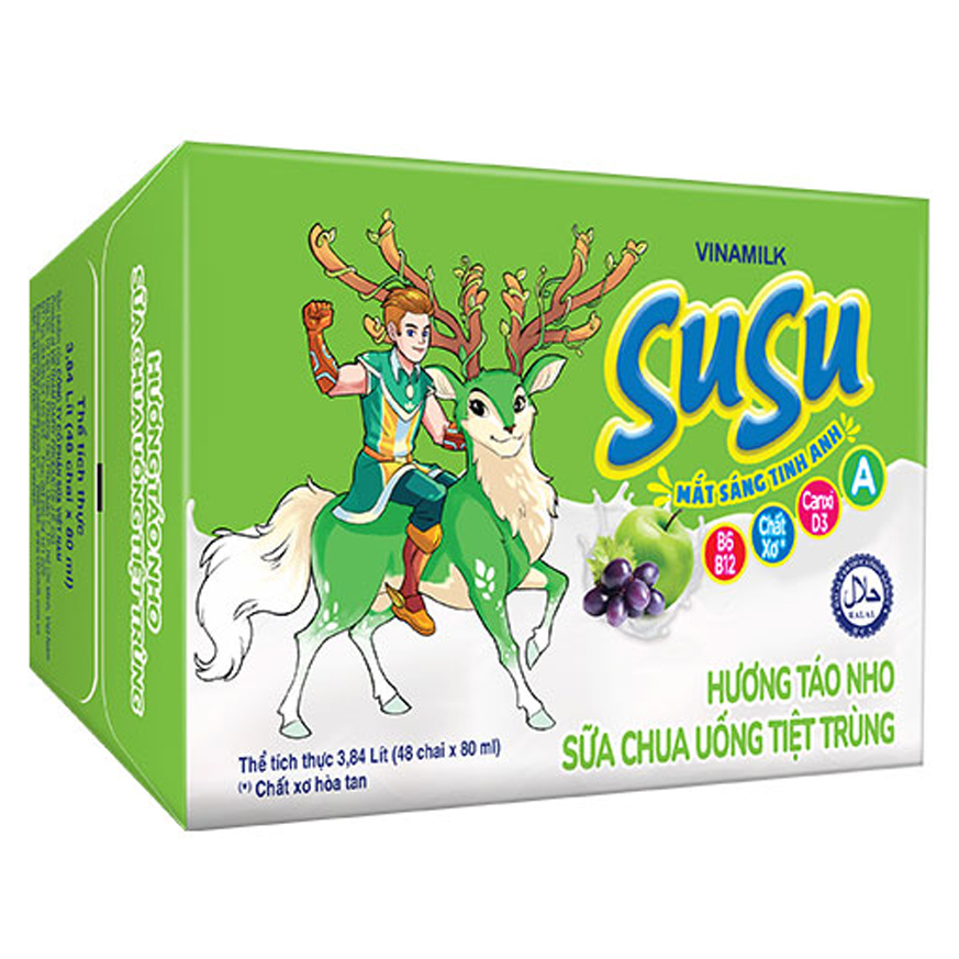Mua tại TiktokSữa chua uống SuSu Hương Táo Nho - Chai màng nhôm - Sữa chua uống Vinamilk SuSu mới – công thức đột phá Vitamin A giúp bé mắt sáng tinh anh, ngoài ra còn có
