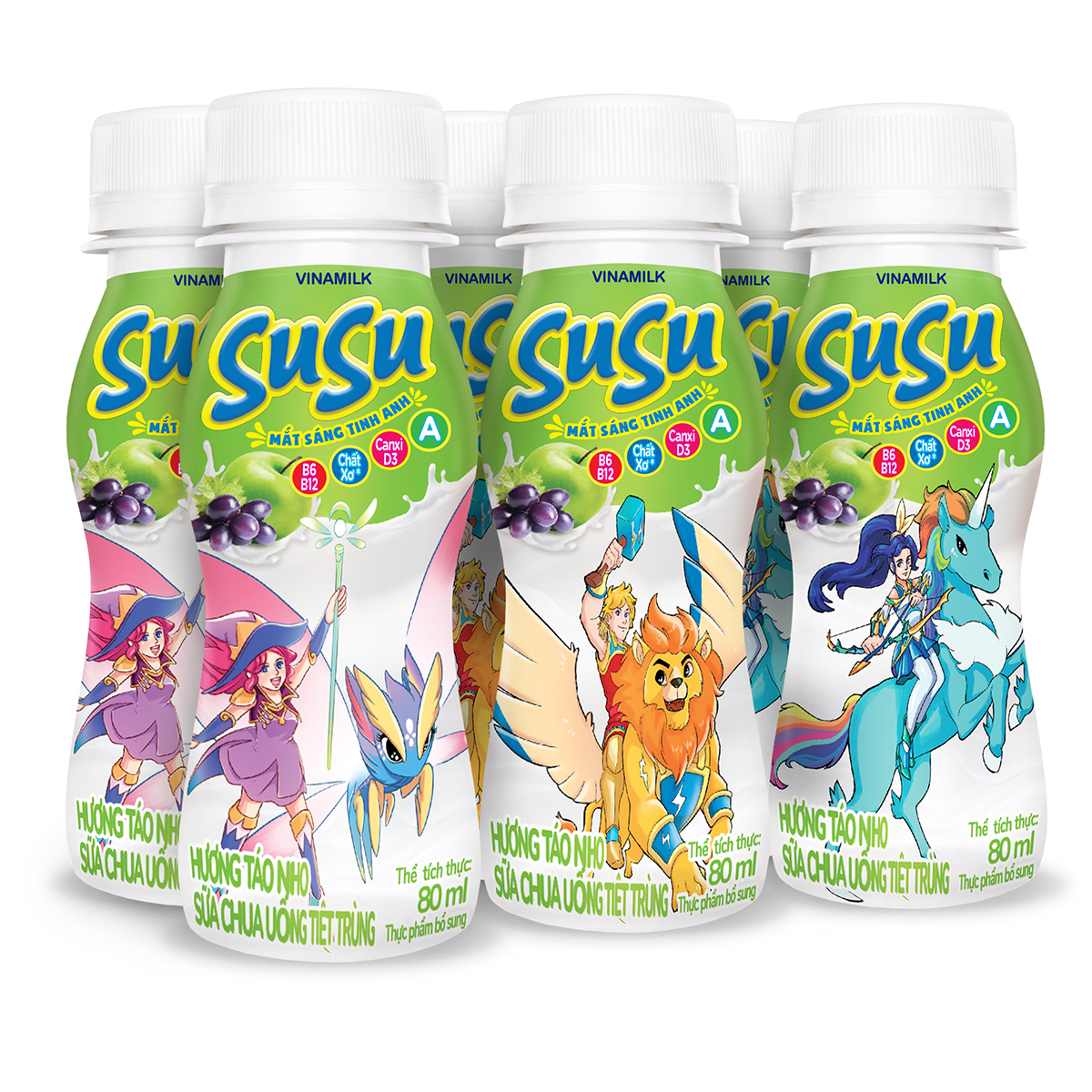 - Sữa chua uống Vinamilk SuSu mới – công thức đột phá Vitamin A giúp bé mắt sáng tinh anh, ngoài ra còn có Vitamin B6, B12 và chất xơ hòa tan giúp bé khỏe