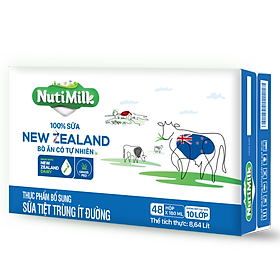 ✨Thùng 48 Hộp NutiMilk 100% Sữa New Zealand Bò ăn cỏ tự nhiên Ít đường 180ml TU.NZSID180TI NUTIFOOD