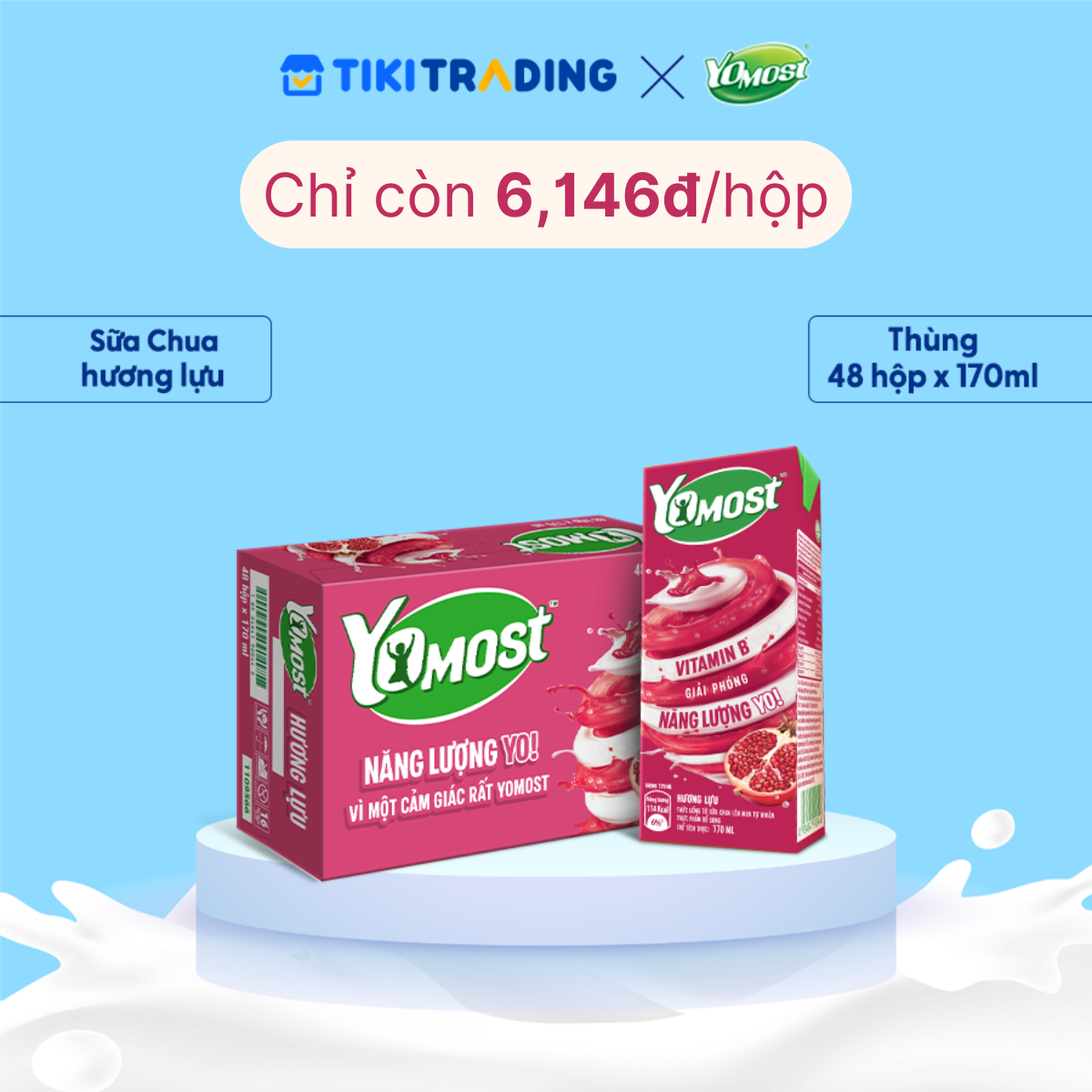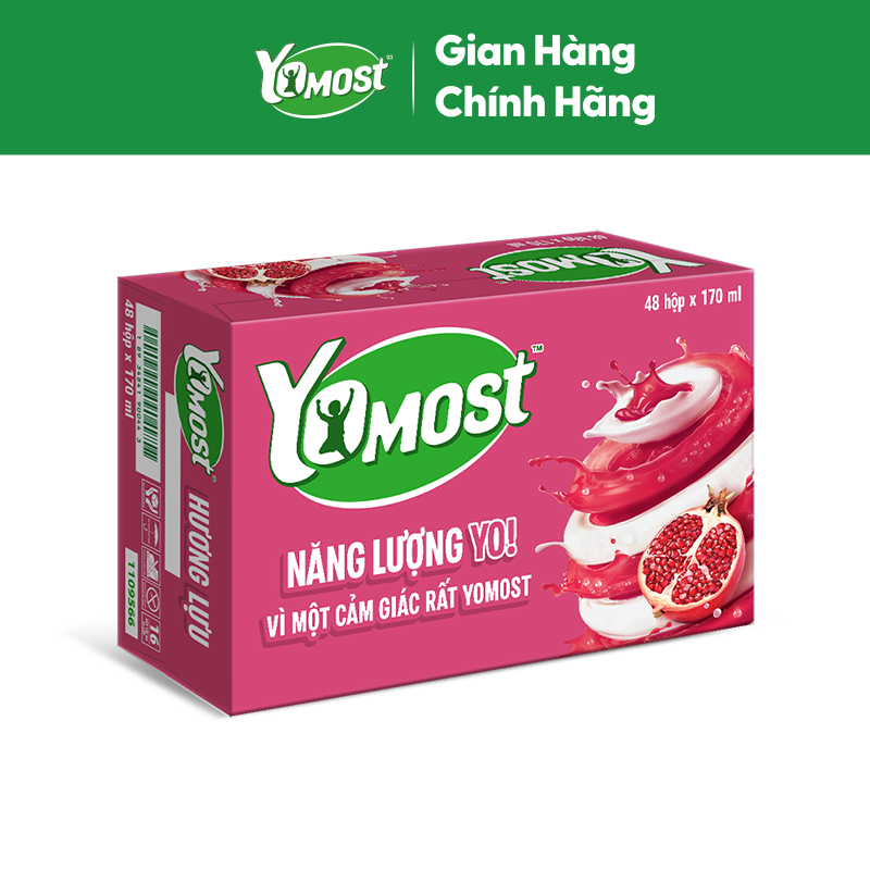 - Thùng 48 Hộp Sữa Chua Lên Men Tự Nhiên Yomost Trái Lựu được làm từ sữa chua lên men tự nhiên kết hợp cùng hương vị cam tươi tự nhiên thơm ngon, giúp cung cấp