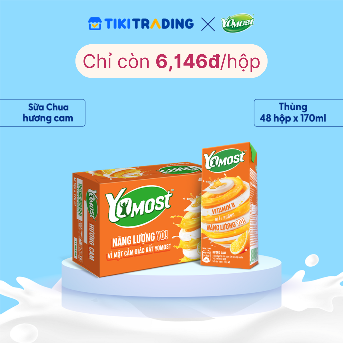 Mua tại Tiktok- Thùng 48 Hộp Sữa Chua Lên Men Tự Nhiên Yomost Vị Cam được làm từ sữa chua lên men tự nhiên kết hợp cùng hương vị cam tươi tự nhiên thơm ngon, giúp cung cấp nhiều loại dưỡng chất cần thiết cho cơ thể như protein, canxi và vitamin cho cơ thể.