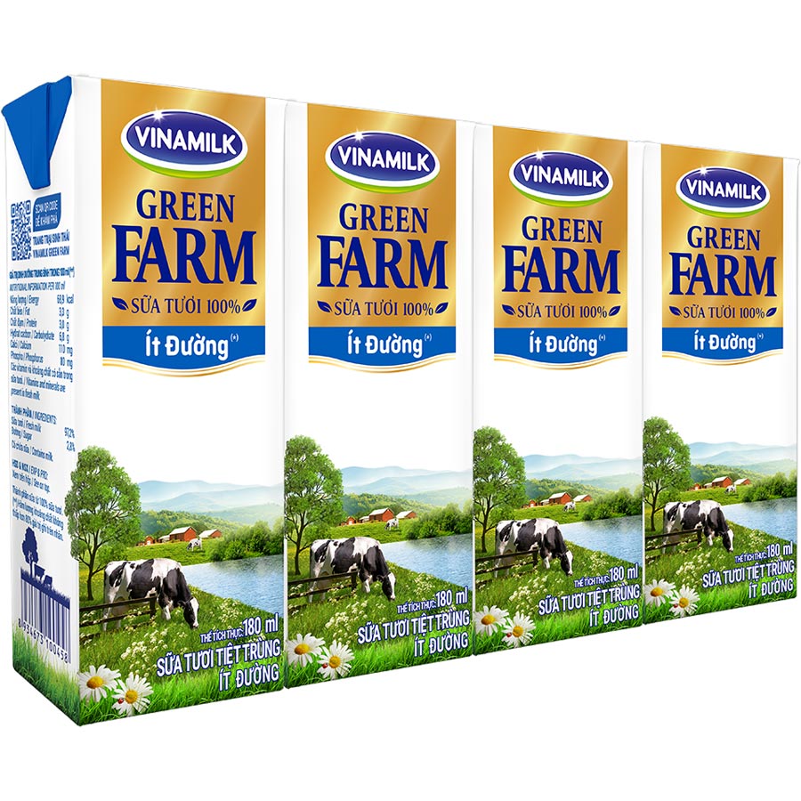 - Sữa Tươi Tiệt Trùng Vinamilk Green Farm - Sữa Tươi 100% Ít Đường 180ml cao cấp mới với nguồn sữa tươi 100% thuần khiết từ hệ thống trang trại sinh thái Vinamilk Green Farm