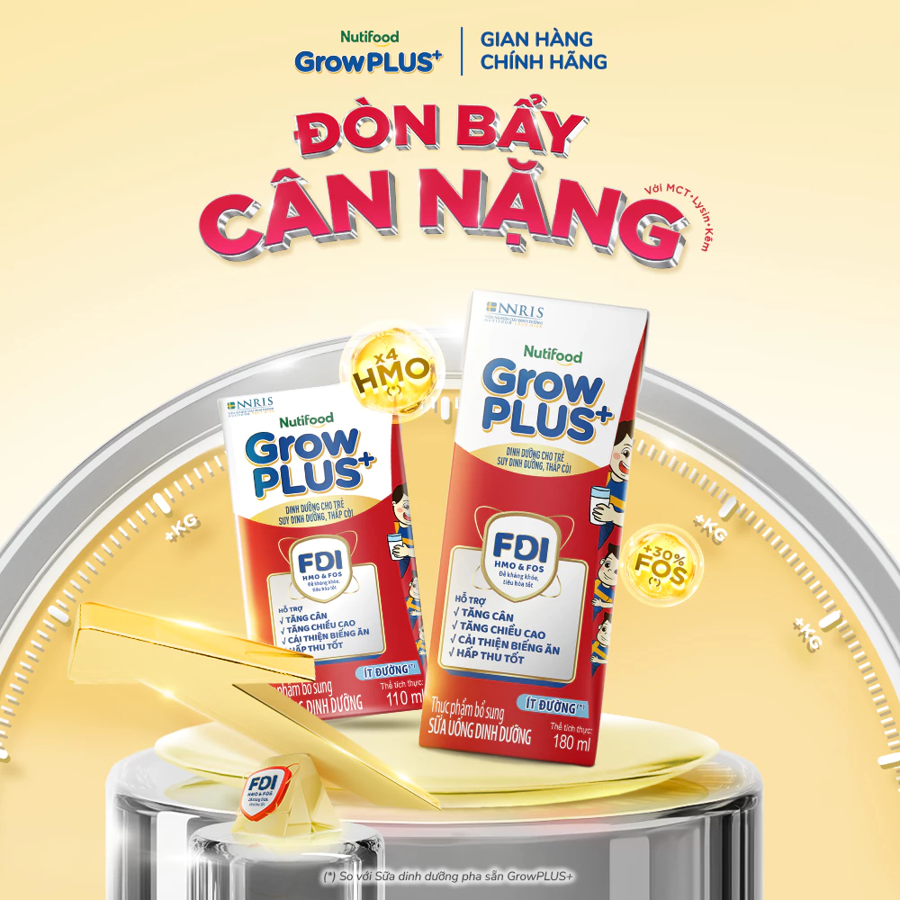 Mua tại TiktokNutifood GrowPLUS+ Nhãn hiệu Sữa trẻ em Số 1 Việt Nam với công thức FDI độc quyền nghiên cứu bởi Viện Nghiên Cứu Dinh Dưỡng Nutifood Thụy Điển, xây dựng nền tảng “Đề Kháng Khỏe, Tiêu Hóa Tốt”, với bộ đôi HMO + FOS và tăng cường gấp 2 lần DHA. Sản phẩm đã được chứng nhận lâm sàng: