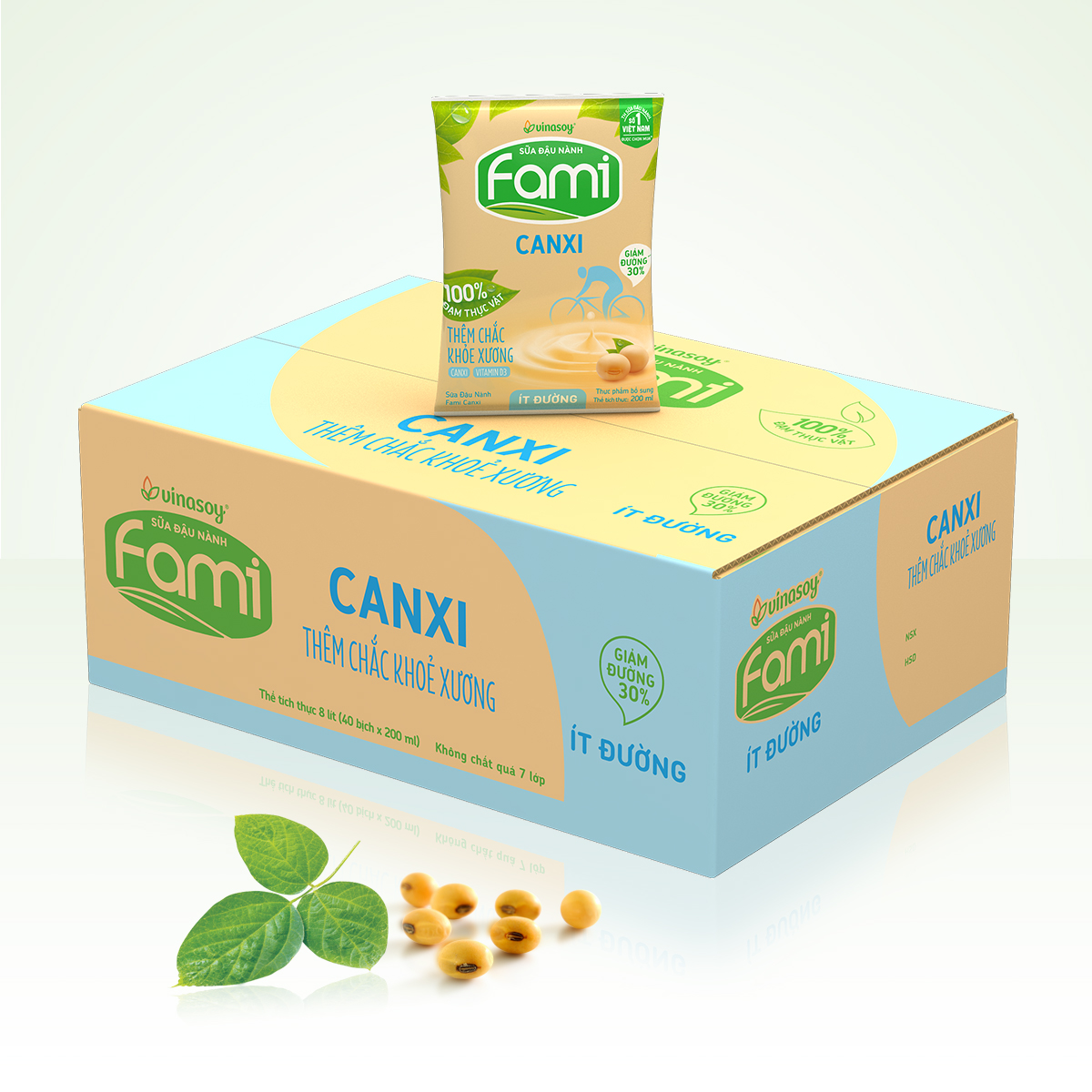 ✨Thùng Sữa đậu nành Vinasoy Fami Canxi ít đường (200ml x 40 bịch)