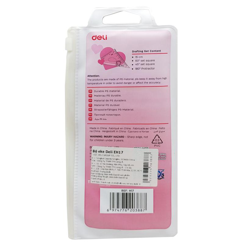Thước Bộ Eke One Piece - Deli EH17 Thước bộ eke là dụng cụ học tập phổ biến, được sử dụng ngay từ cấp tiểu học. Bộ thước gồm: 1 thước thẳng 15cm, 1 thước